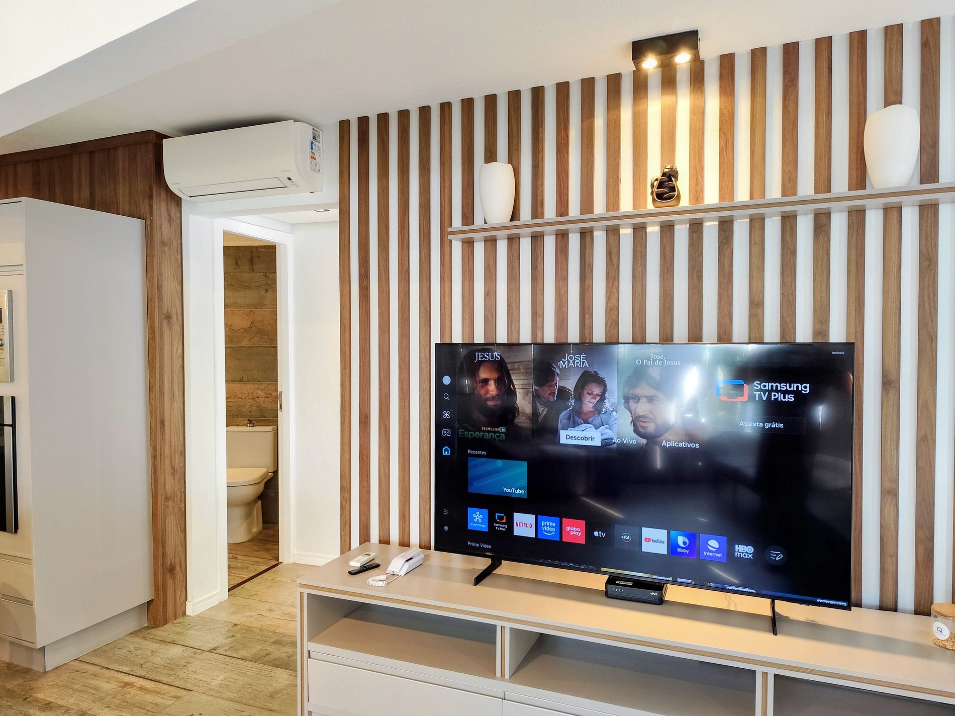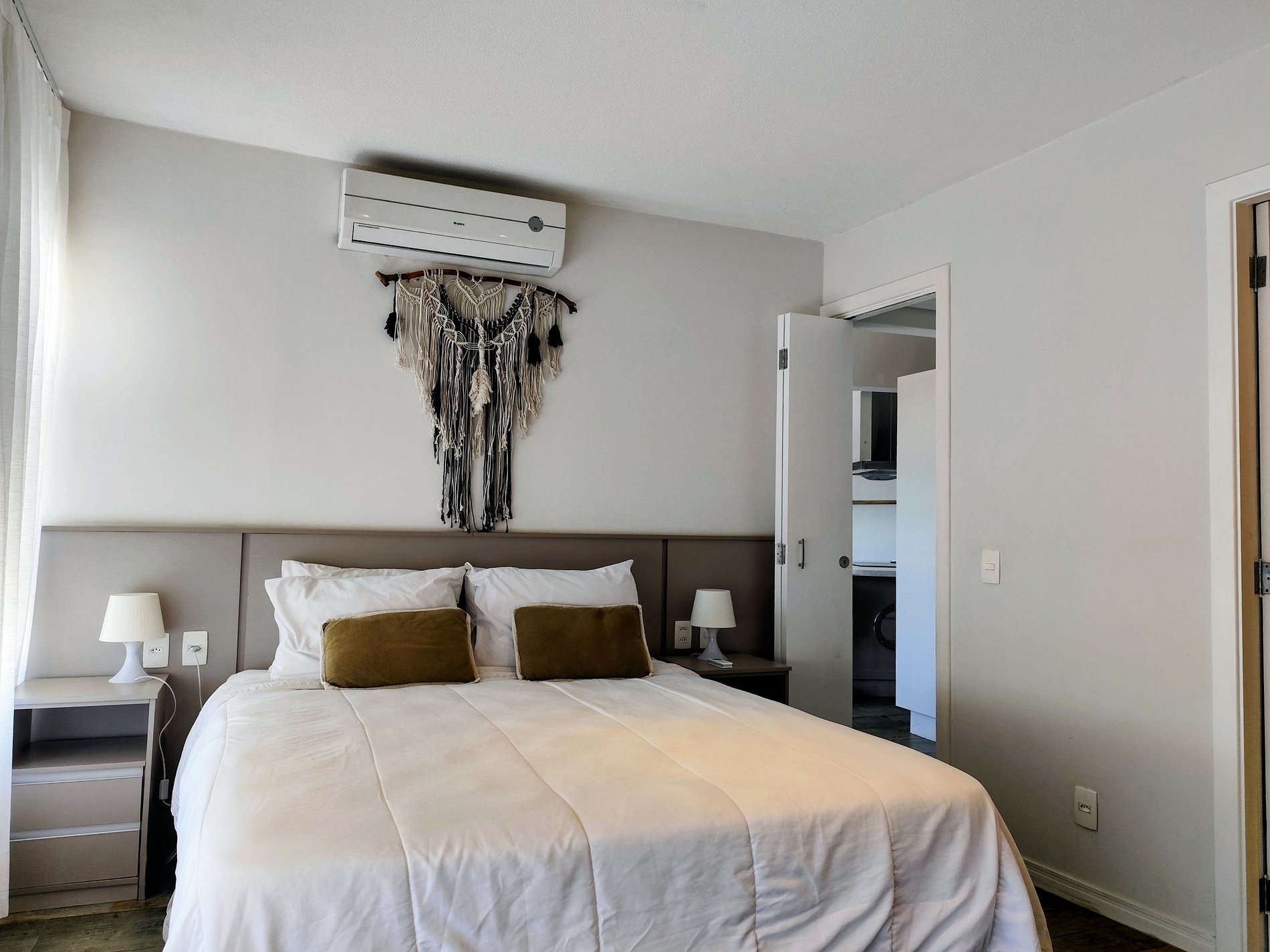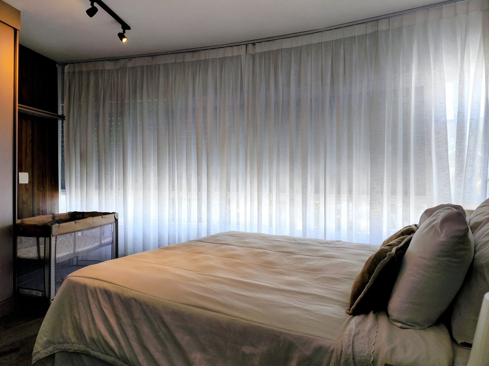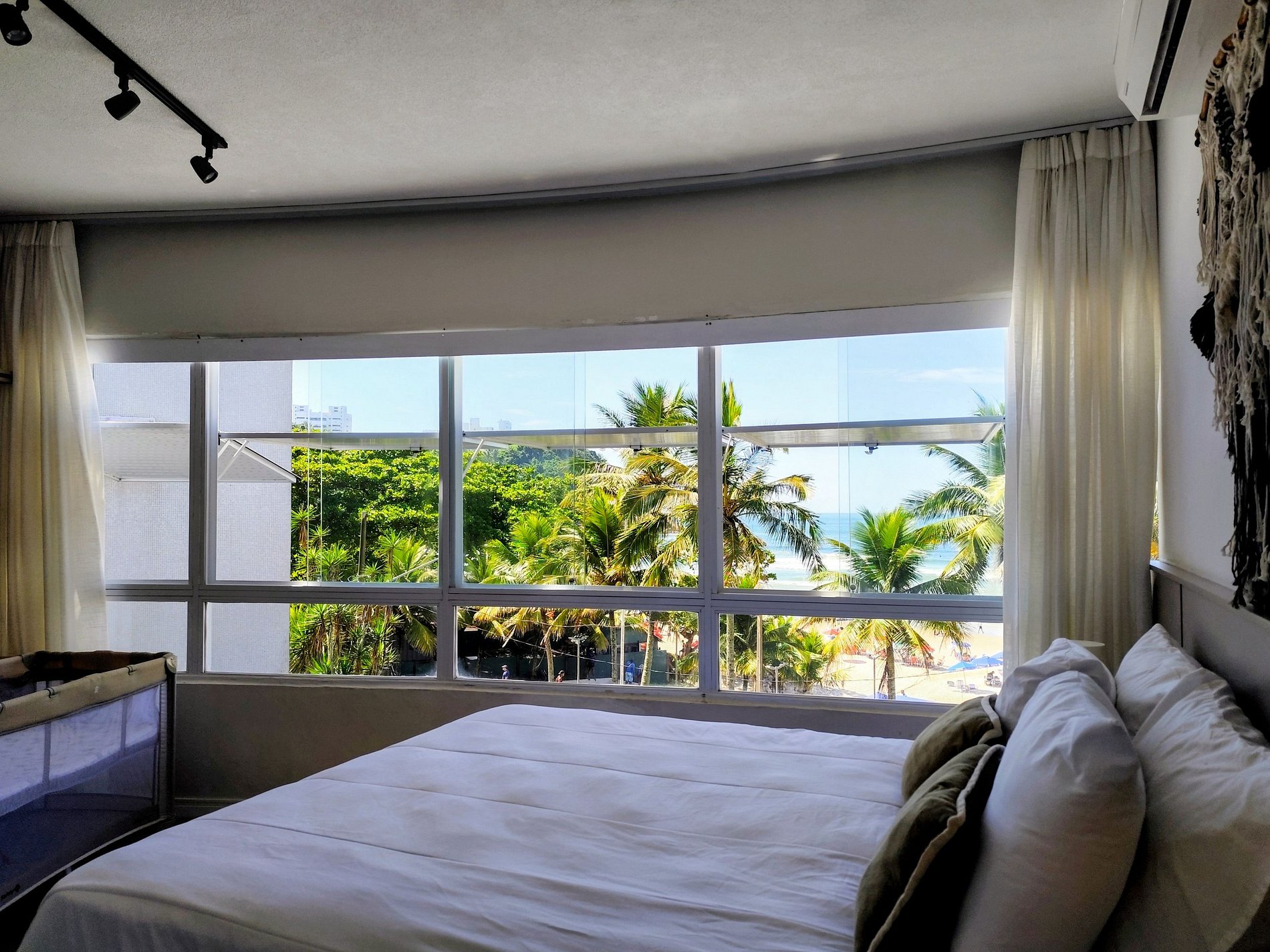 A Suíte conta com cama de casal, BERÇO PORTÁTIL, abajures, cortina Blackout e ar condicionado e roupeiros e TV Smart e um lindo banheiro completo.