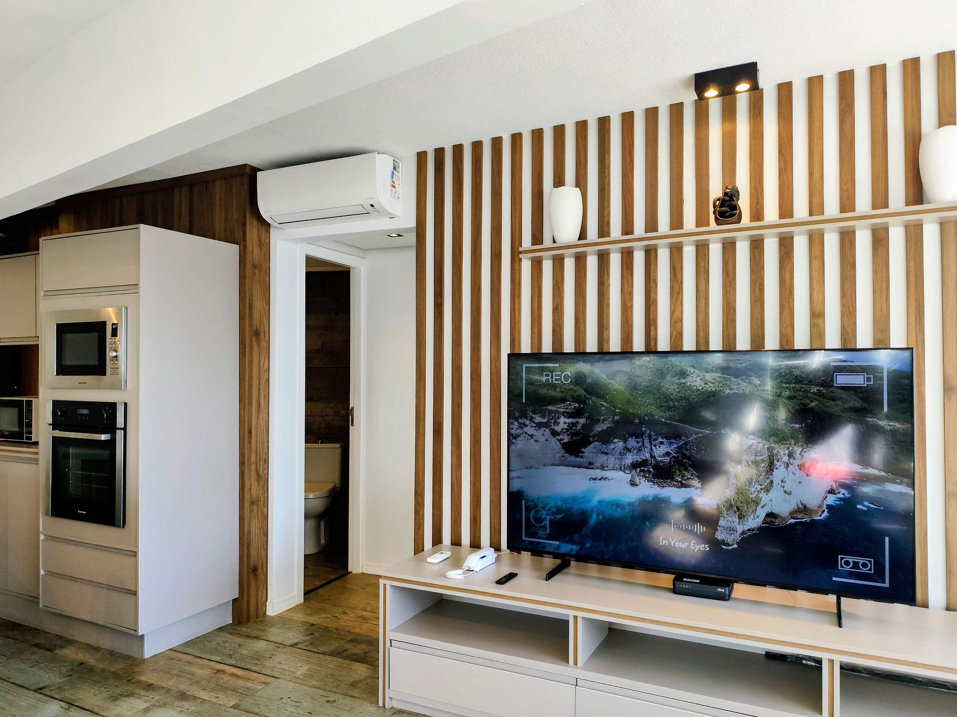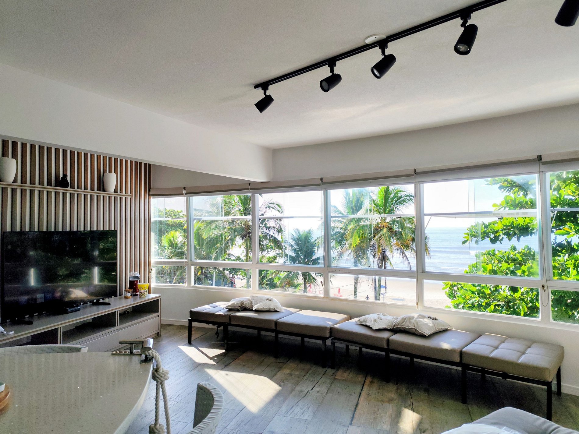 Os hóspedes terão todo conforto exclusivo de estar em um belo apartamento de frente ao mar.