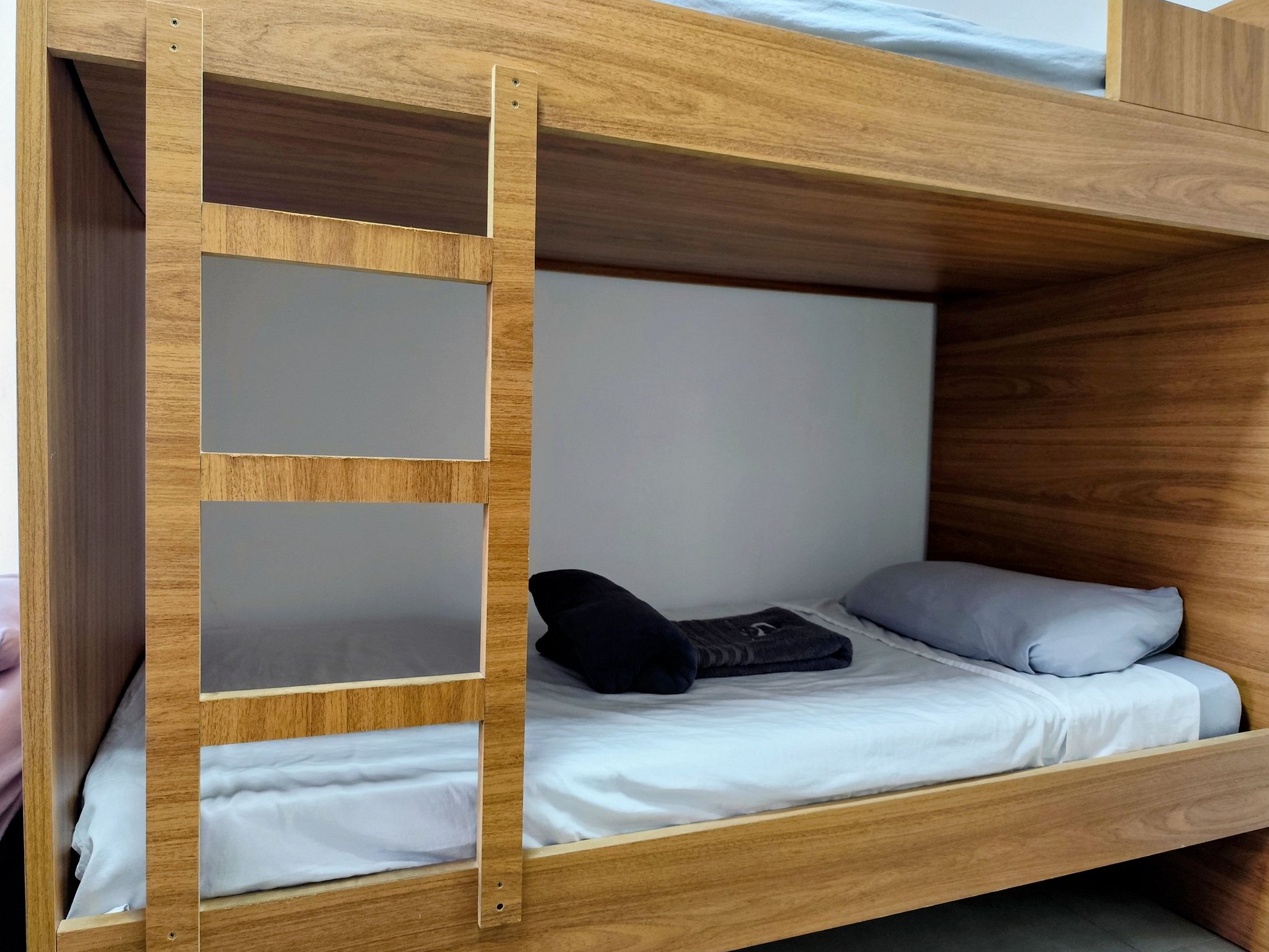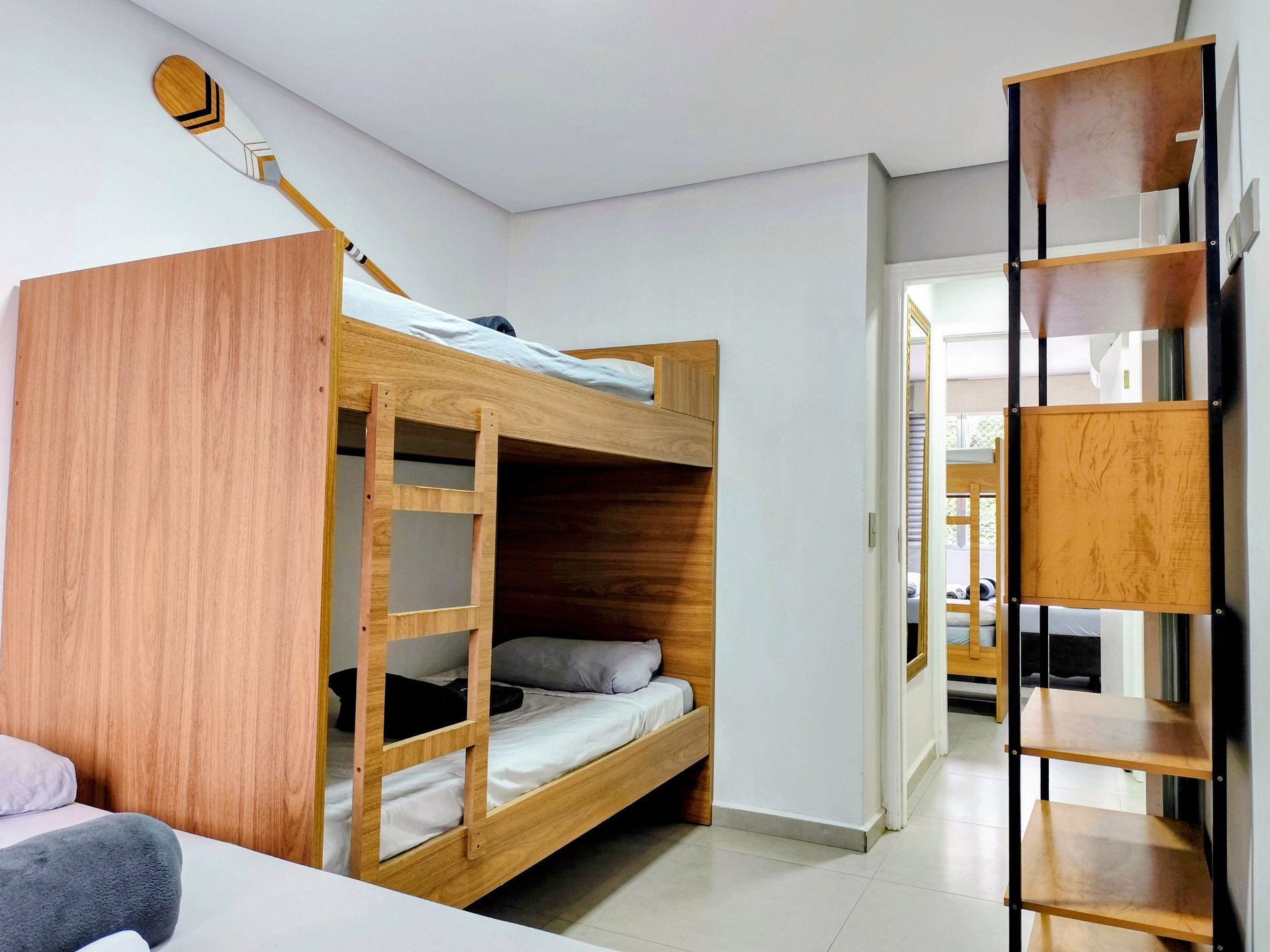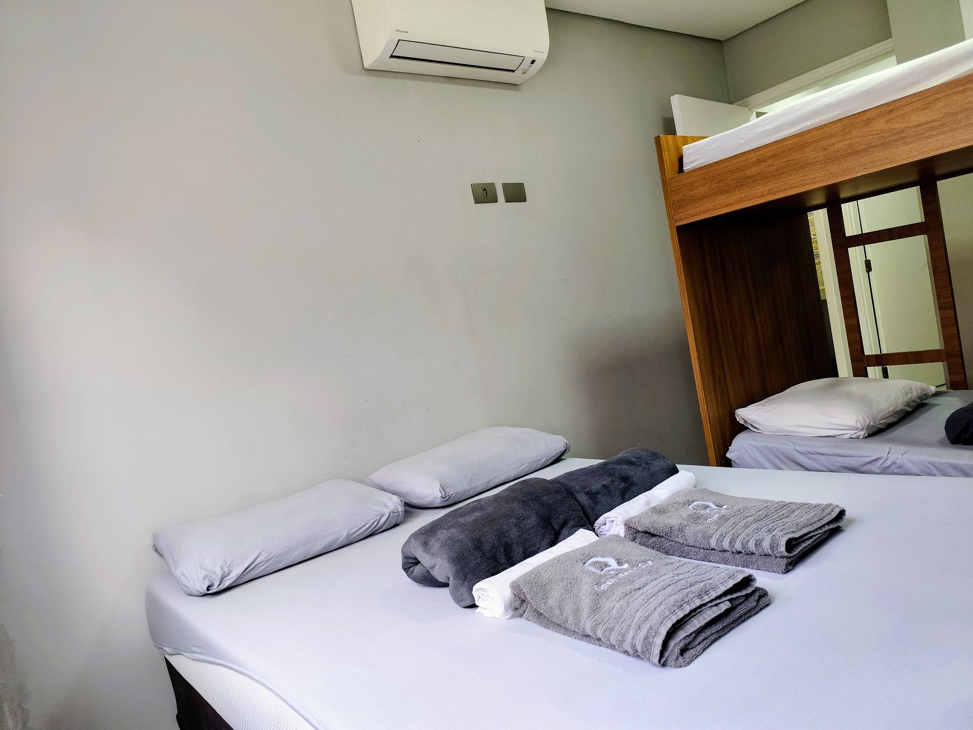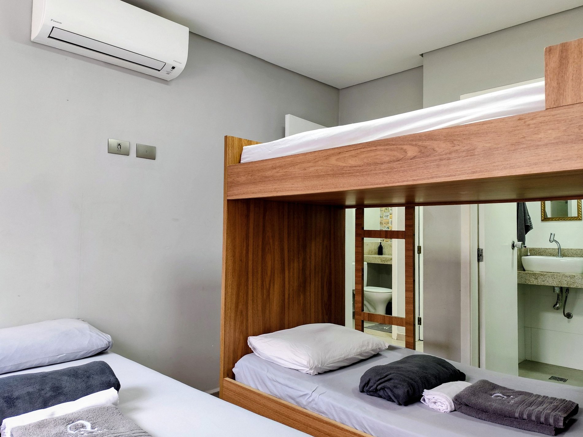 Suíte 1 conta com uma cama de Casal Padrão uma Beliche (Dormem 4 pessoas)