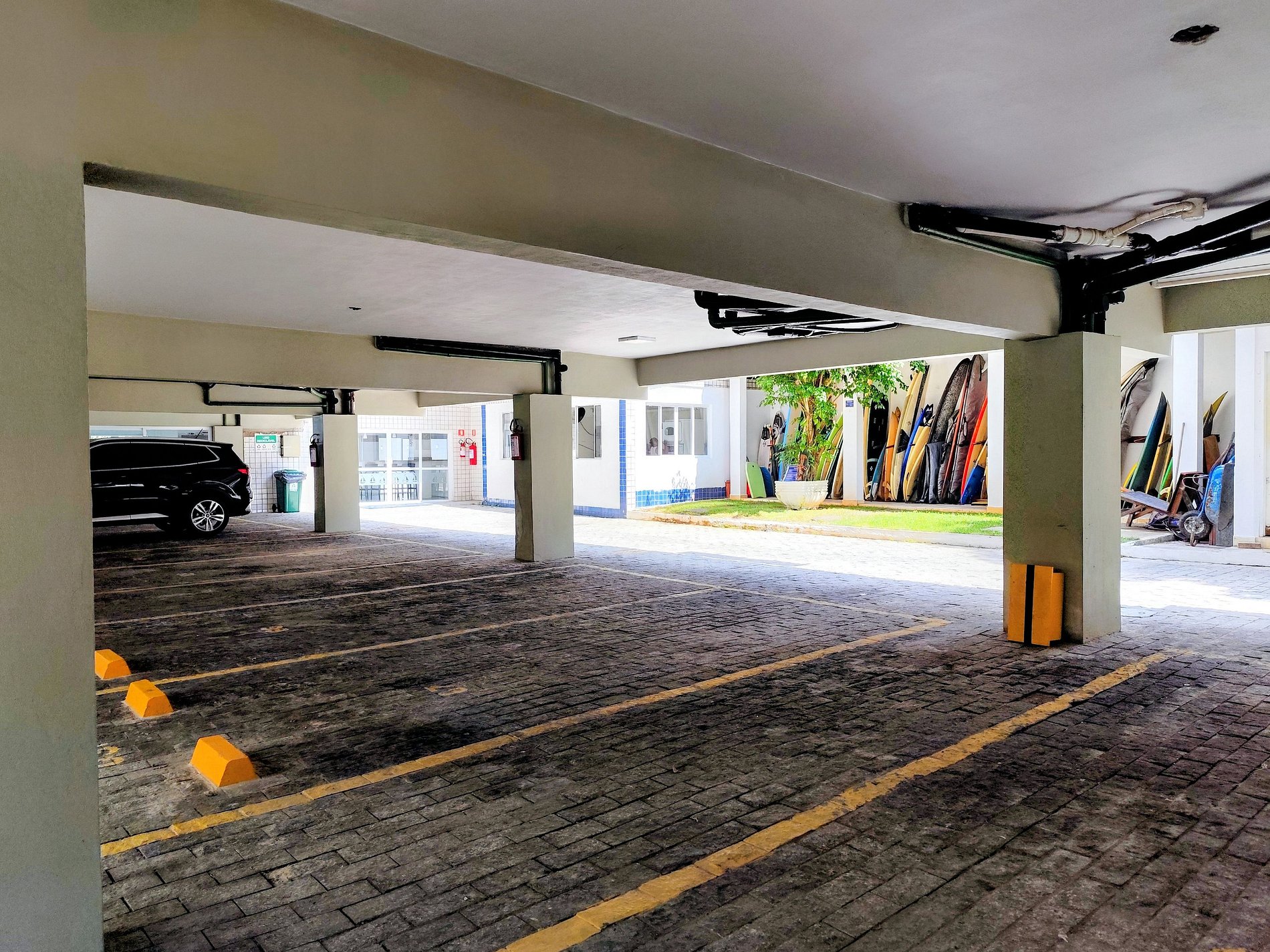 Há uma vaga de garagem disponivel e localizada bem em bajxo do apartamento.