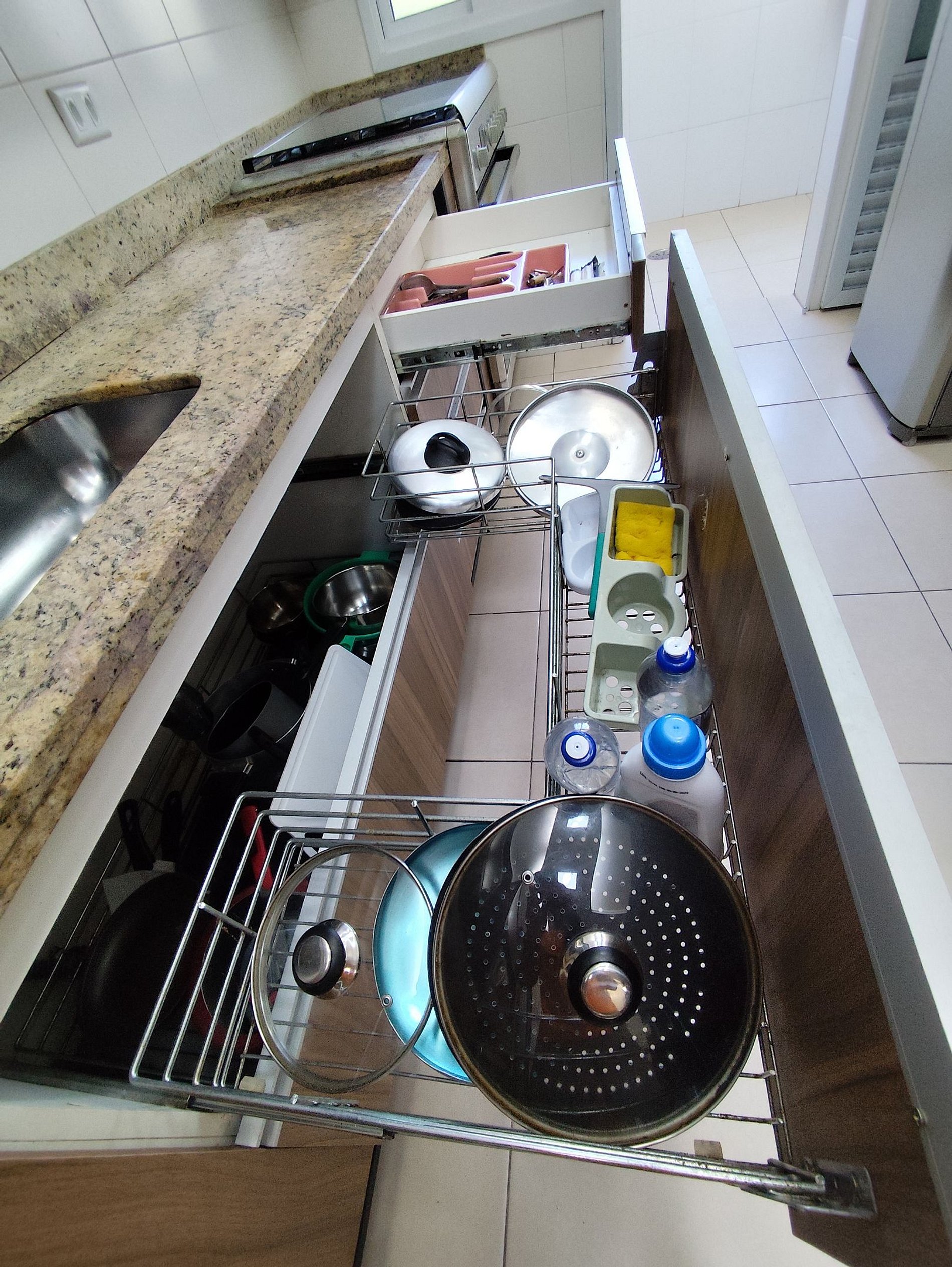 Retirar todo o lixo e descartar nas lixeiras disponíveis nos blocos A,B e C. Lavar e secar toda louça e utensílios de cozinha.