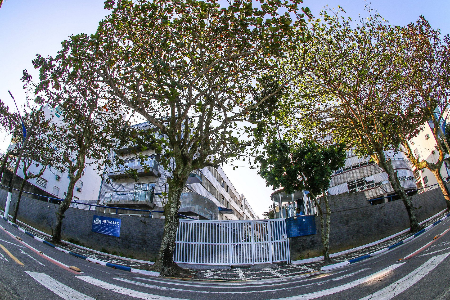 O apartamento fica em frente à praia do Tombo com acesso direto pelo portão de entrada do condomínio.