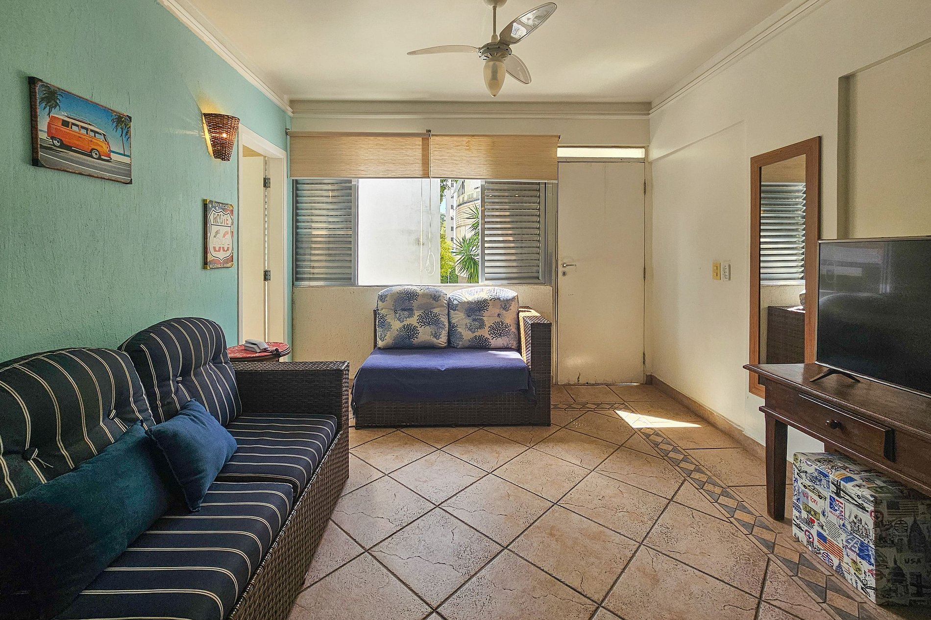 Praticidade num apartamento em condomínio fechado frente a praia do Tombo.