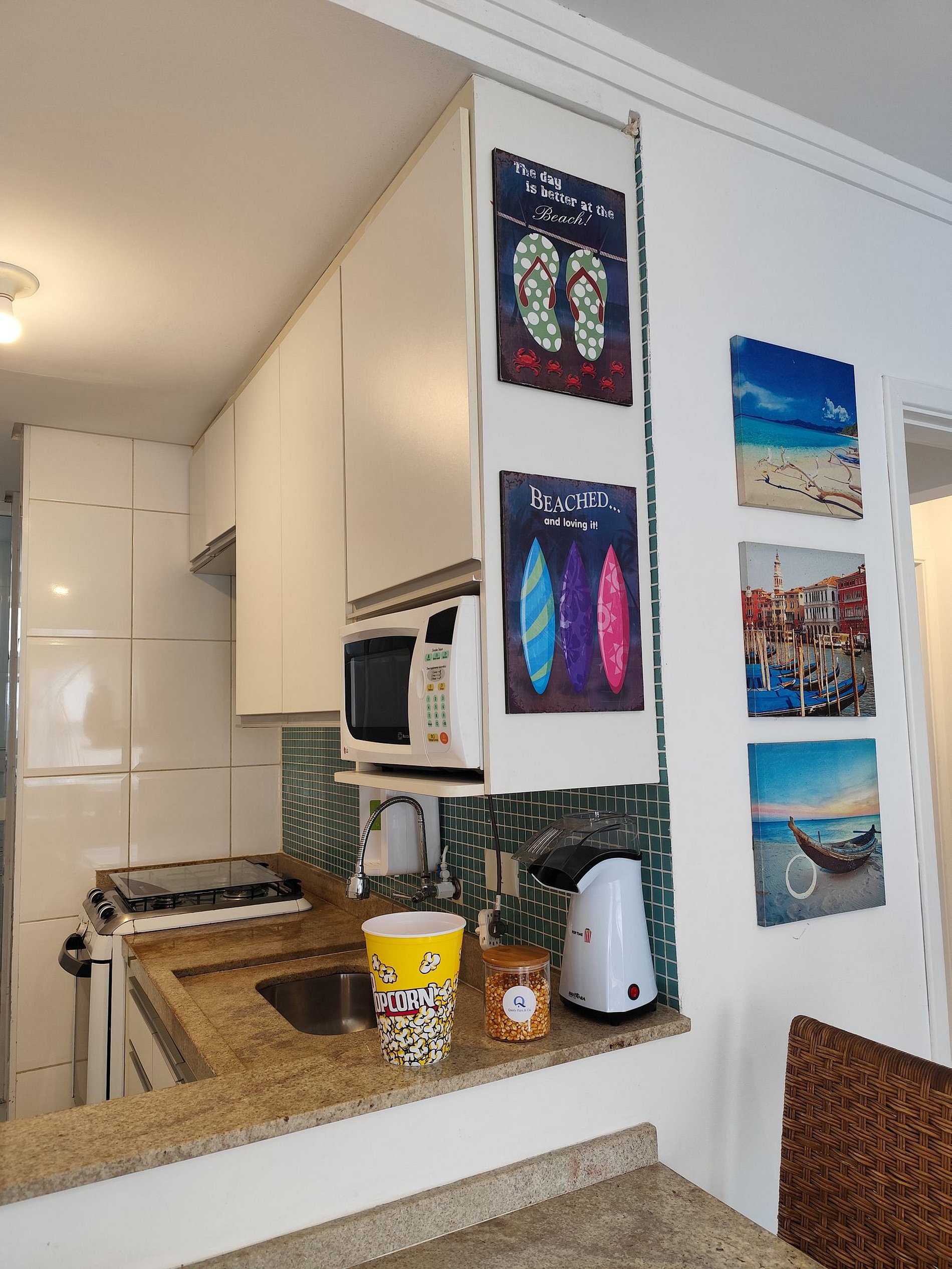 Praticidade de estar hospedado em um apartamento pé na areia com todas as facilidade do dia a dia no entorno.