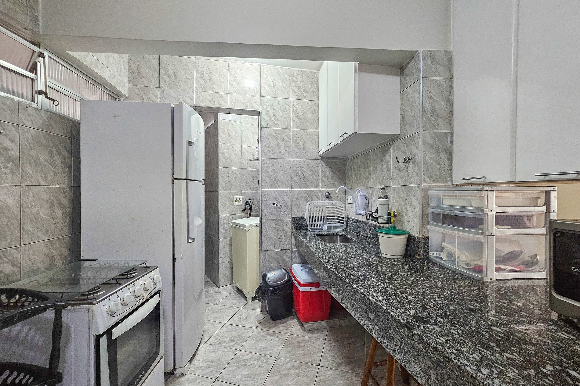 Apartamento de 2 quartos c/ ventiladores, 1 banheiro, sala c/ Living ampliado, cozinha, área de serviço e 1 vaga de garagem